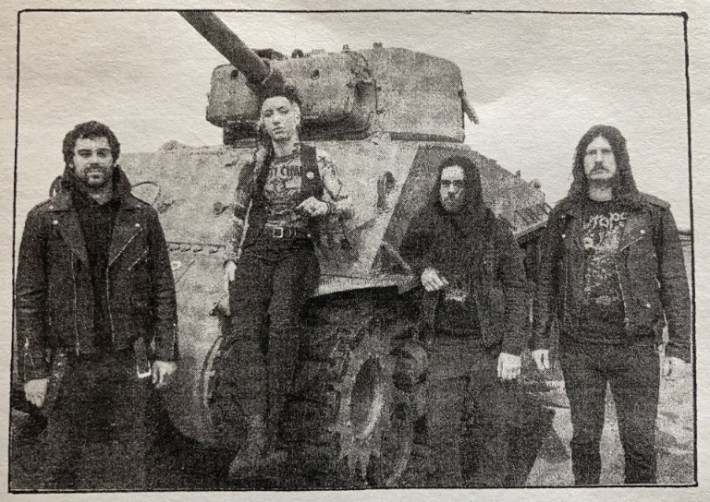 AJ: Cody, Anatol, JP, and I have all played in many punk and metal bands. I think the first time we all met would've been at a show in the basement of LBH in Kamloops sometime around 2011. JP and I started Hedonist in 2020. For both being into a niche subculture, JP and I have almost entirely opposing tastes in punk and metal. We wanted to start a death metal band together based on the one thing we both appreciated: Bolt Thrower. We took shared crust influences and elements of Swedish death metal and started Hedonist. Once establishing what the songs for the demo would sound like, we asked Cody to drum for us. After releasing it and deciding to play live, we asked Anatol to play second guitar. All of us have recently completed our first full-length record together.